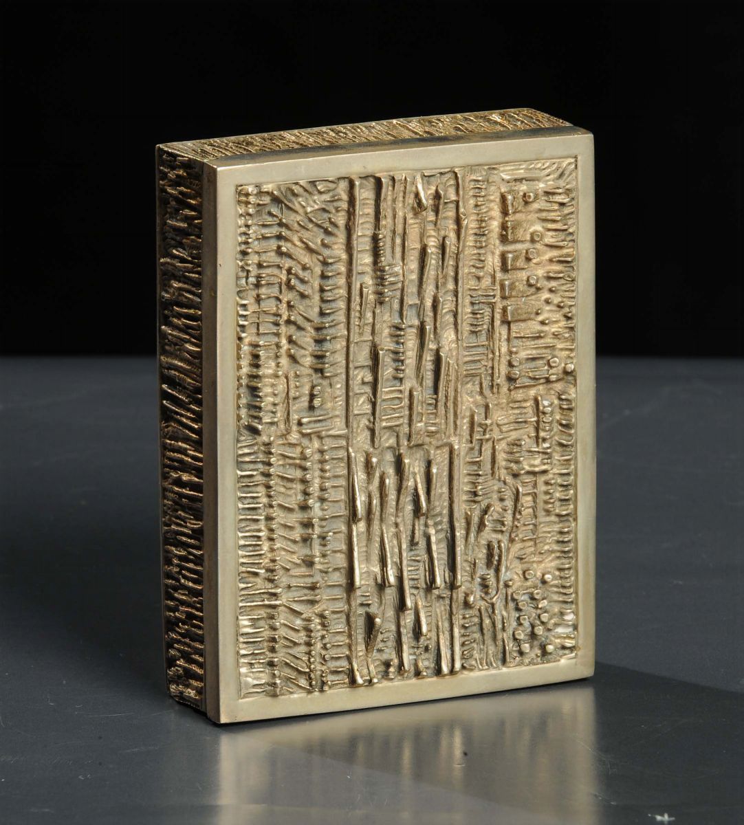 Scatolina in argento con disegno di Gio Pomodoro, XX secolo