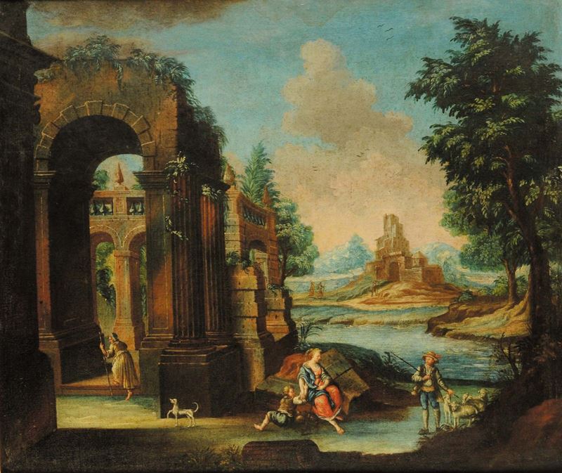 Scuola Veneta del XVIII secolo Paesaggio con architetturePaesaggio con architetture