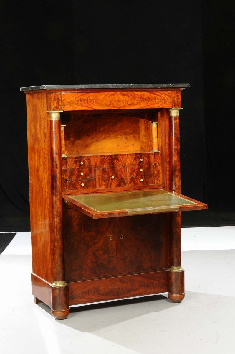 SecrŽtaire ˆ abattant Impero lastronato in piuma di mogano, Francia XIX secolo