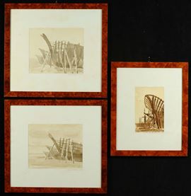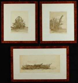 Sei acqueforti firmate diverse raffiguranti imbarcazioni in costruzione, XIX secolo
