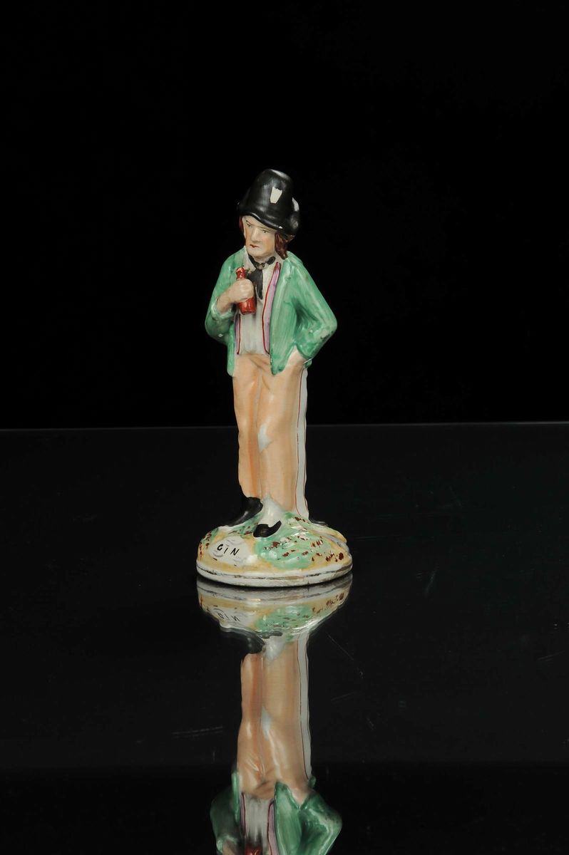 Statuina in ceramica Staffordshire raffigurante Gin and water, Inghilterra 1830/40 circa