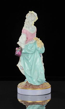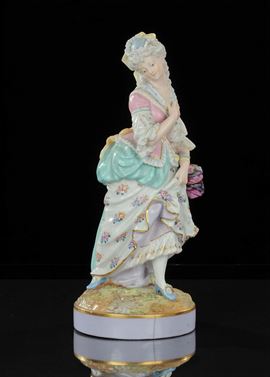 Statuina in porcellana decorata in policromia raffigurante figura femminile