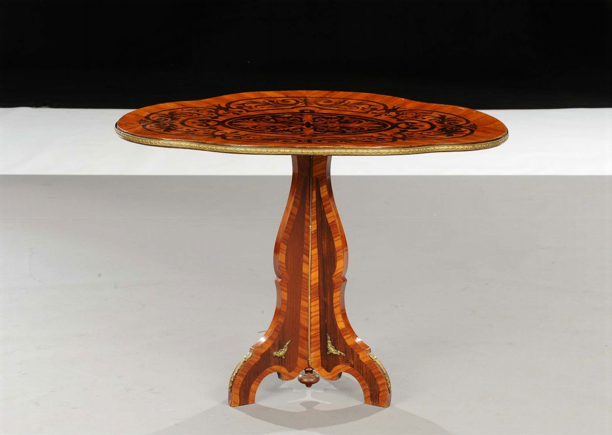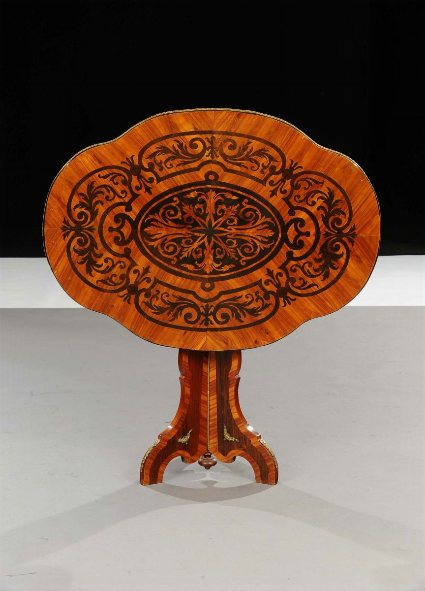 Tavolino Napoleone III lastronato ed intarsiato, XIX secolo