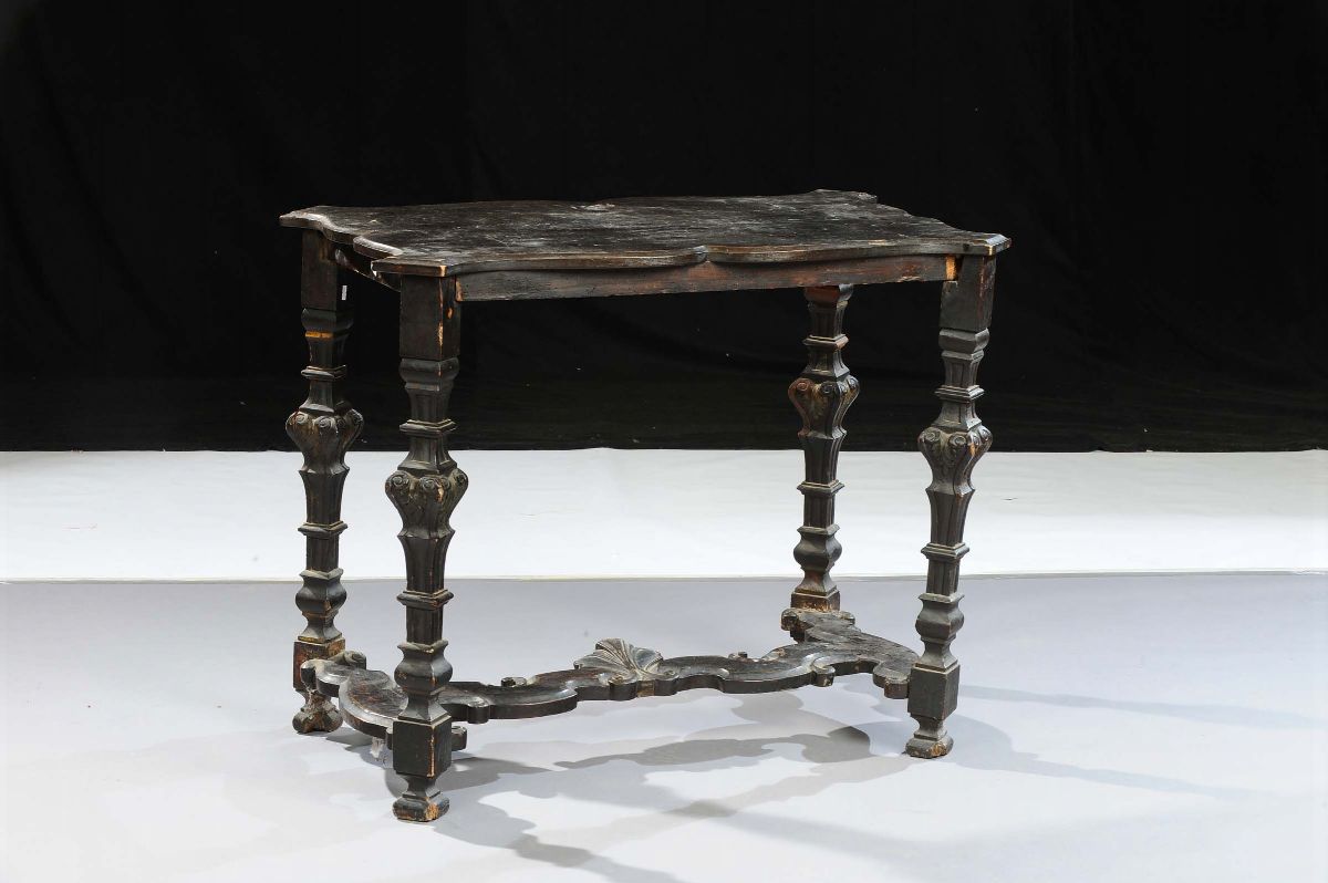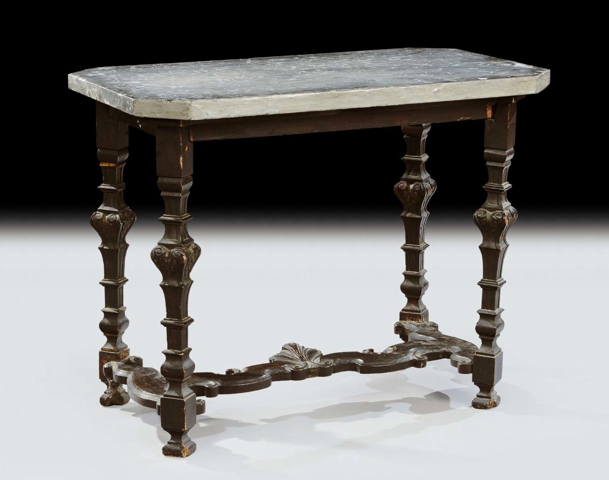 Tavolo in legno ebanizzato con piano in scagliola, Lombardia XVIII secolo