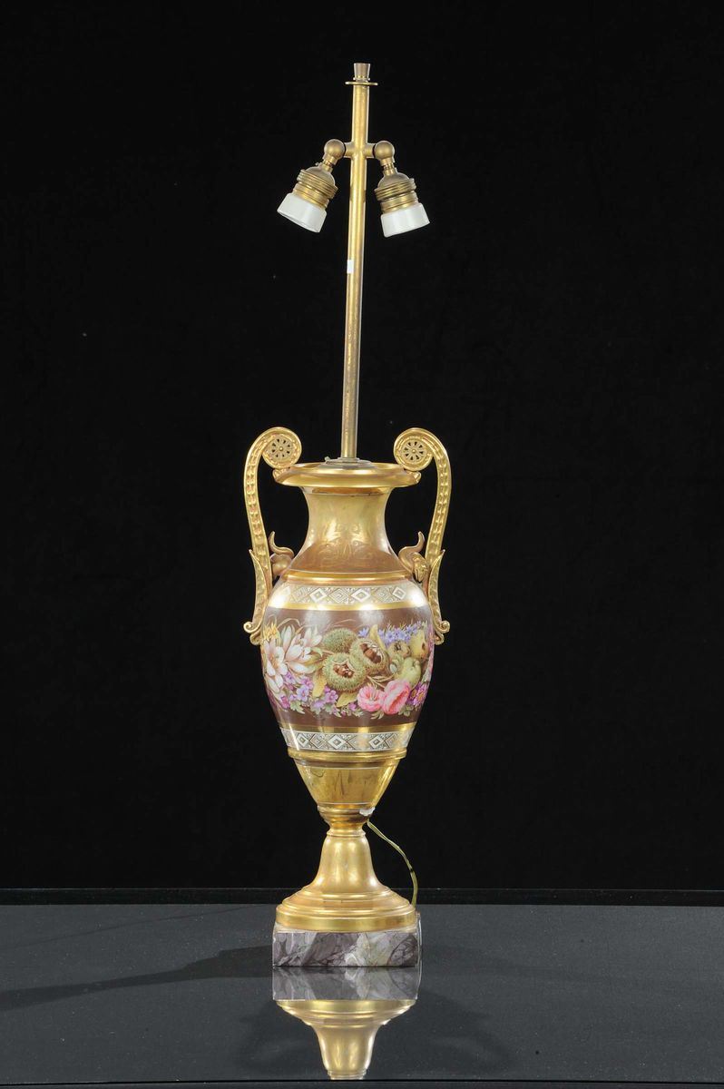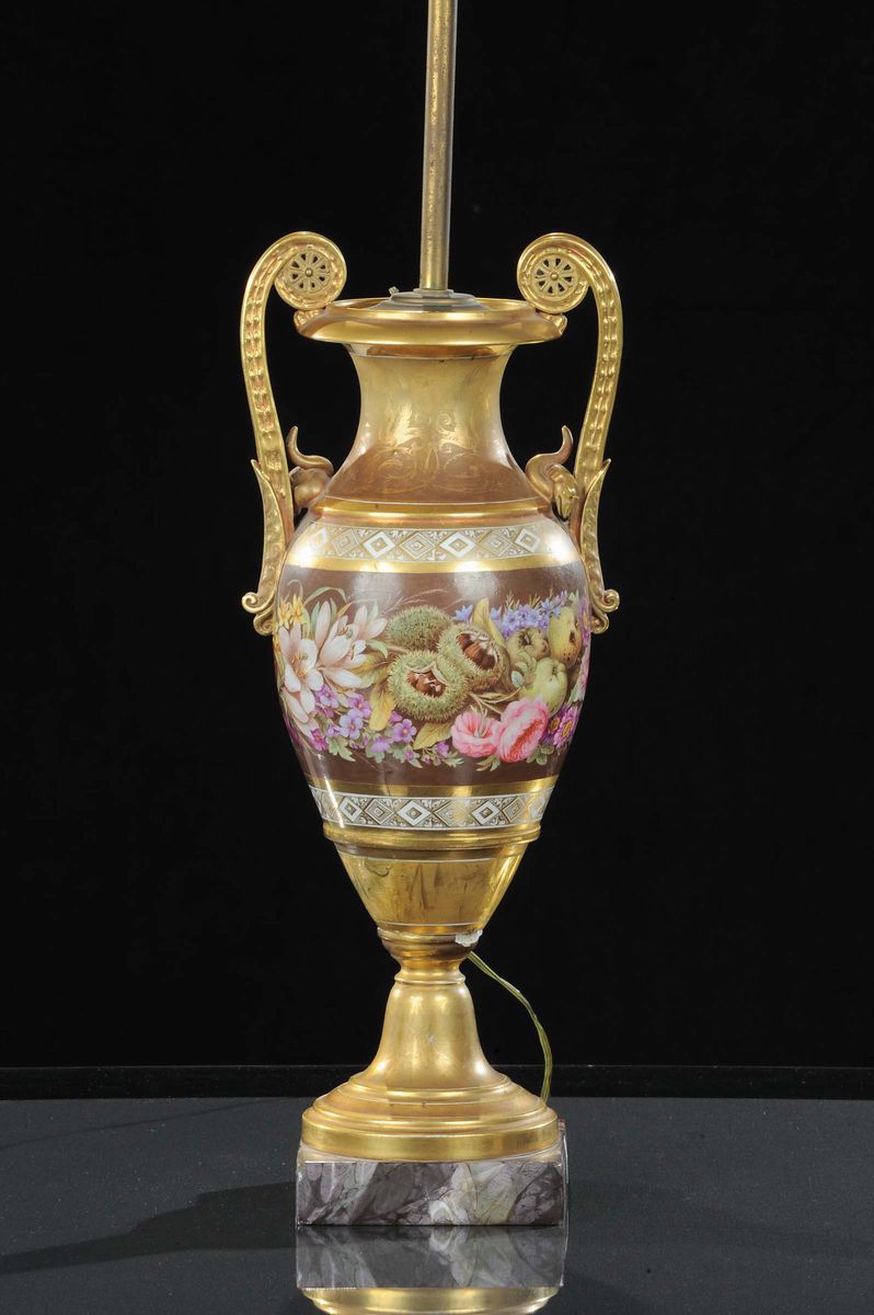 Vaso ad anfora in porcellana policroma trasformato in lampada, Parigi inizi XIX secolo