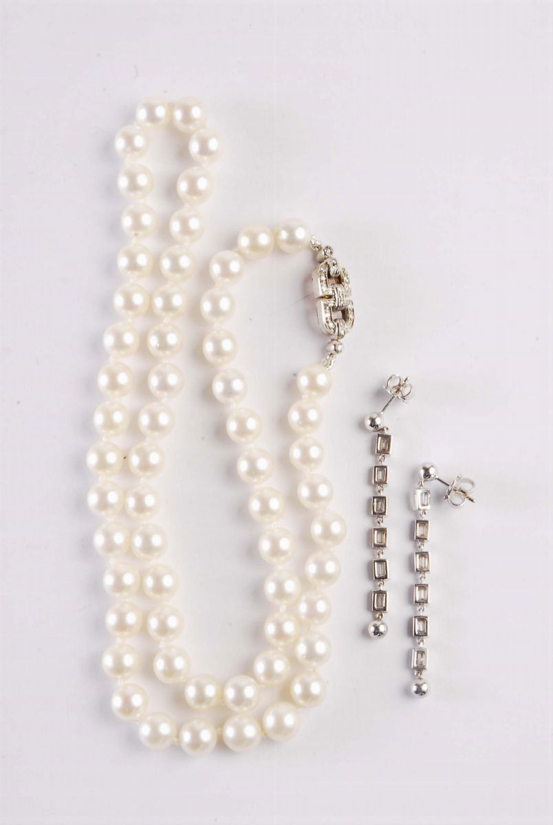 Lotto composto da orecchini idi diamanti e collana di perle Akoya