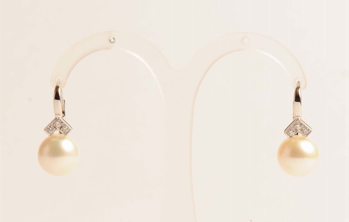 con perla bianca di --- mm di diametro e diamanti, oro 18Kt