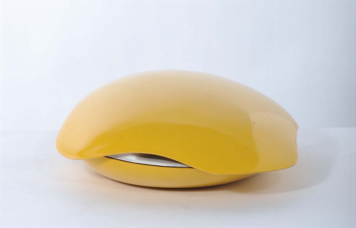 Lampada da tavolo gialla in metallo laccato