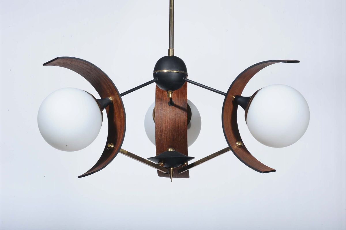 Lampadario a tre luci in legno curvato a caldo, 1960 circa