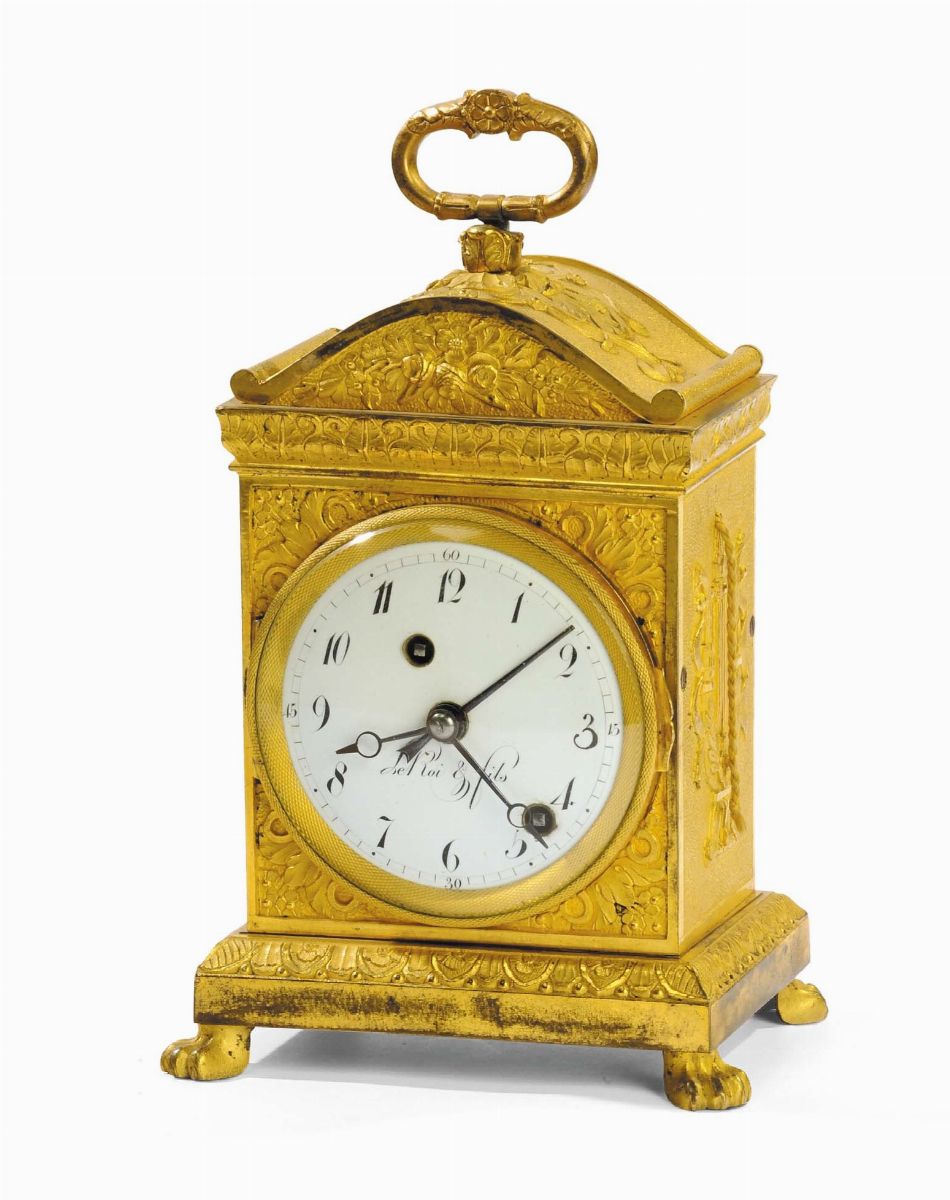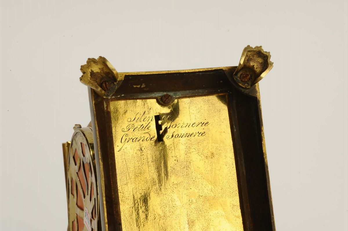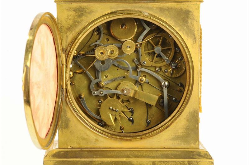 movimento a verga, suoneria a passaggio ed al richiamo, sveglia; sul fondo della cassa leva per selezionare il tipo di suoneria: piccola, gran o silenzio. Quadrante firmato Le Roy et fils, movimento n° 1106, cm 25x15x11