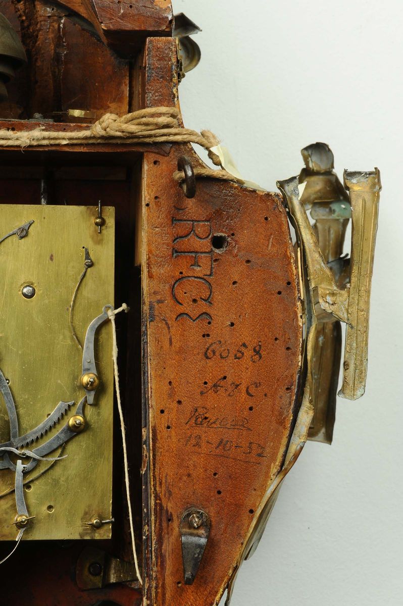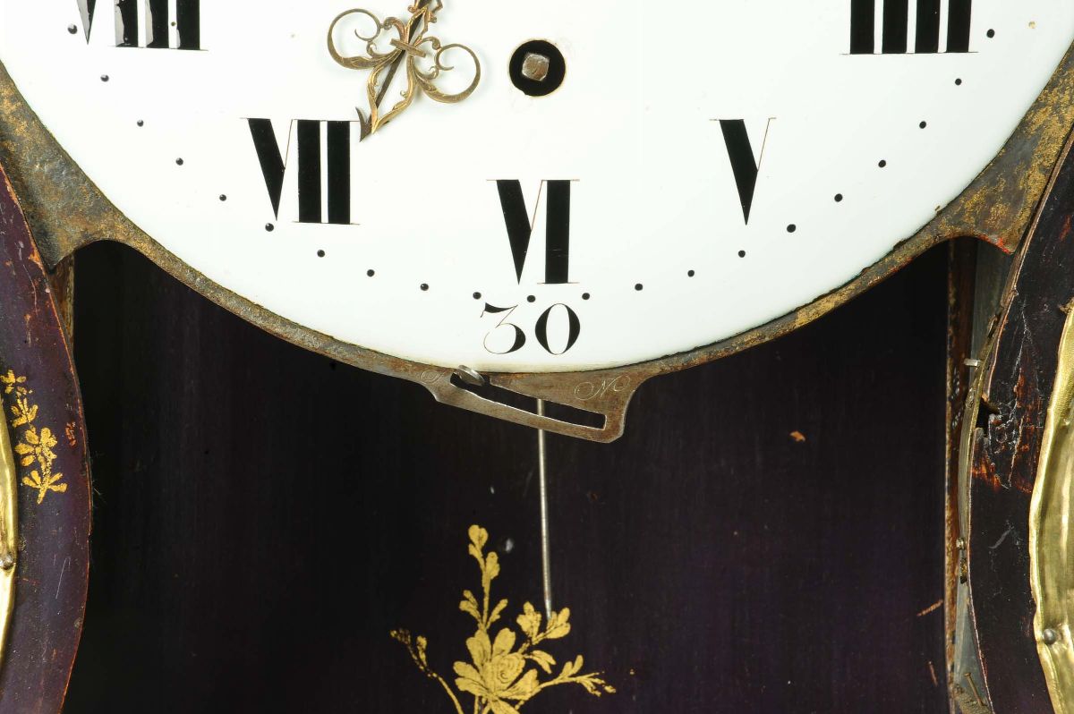 Orologio Cartel da muro con mensola, cassa Venis Martin laccata color vinaccia, Svizzera/Francia 1770 circa