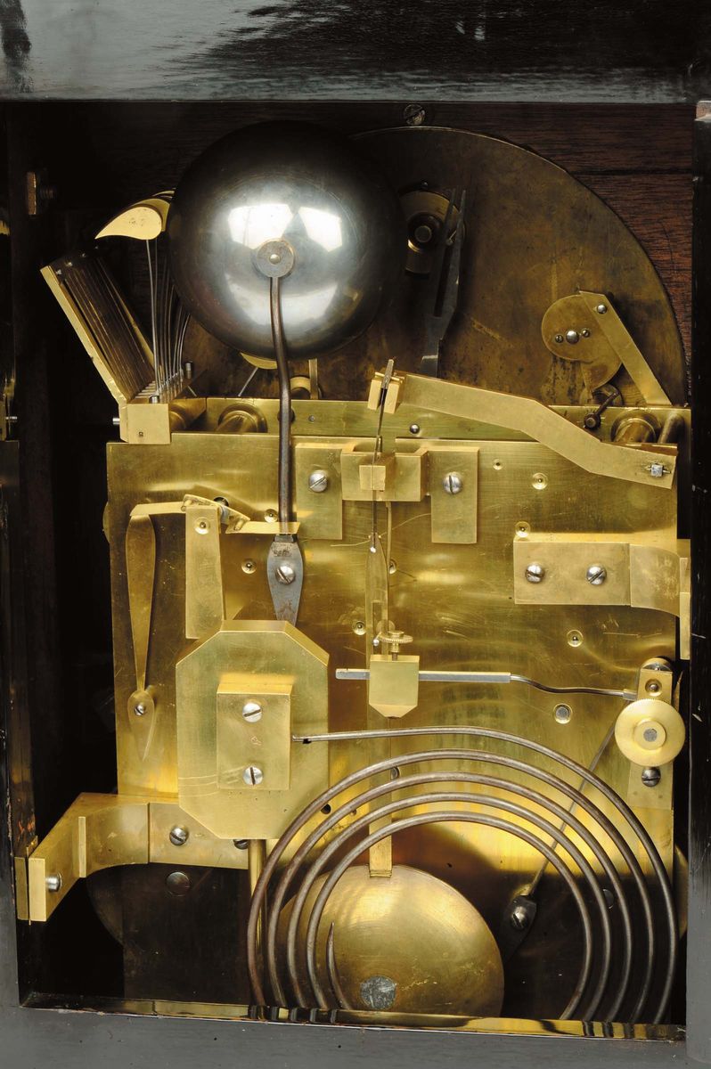 Orologio con cassa in legno ebanizzato e applicazioni in bronzo dorato, Inghilterra XVIII secolo
