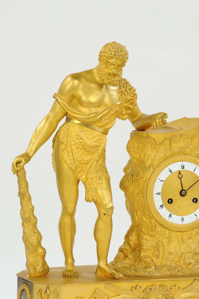 Orologio Impero in bronzo dorato raffigurante Ercole con clava