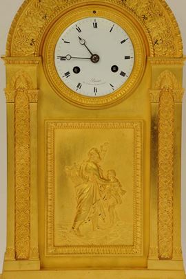 Pendules du mobilier National, pag. 180 Il bassorilievo centrale ritrae Omero che si appoggia ad un bambino nella raffigurazione della giovinezza che aiuta la saggezza che a sua volta trasmette l'esperienza