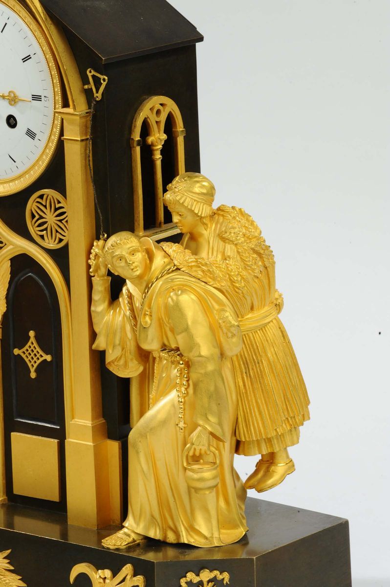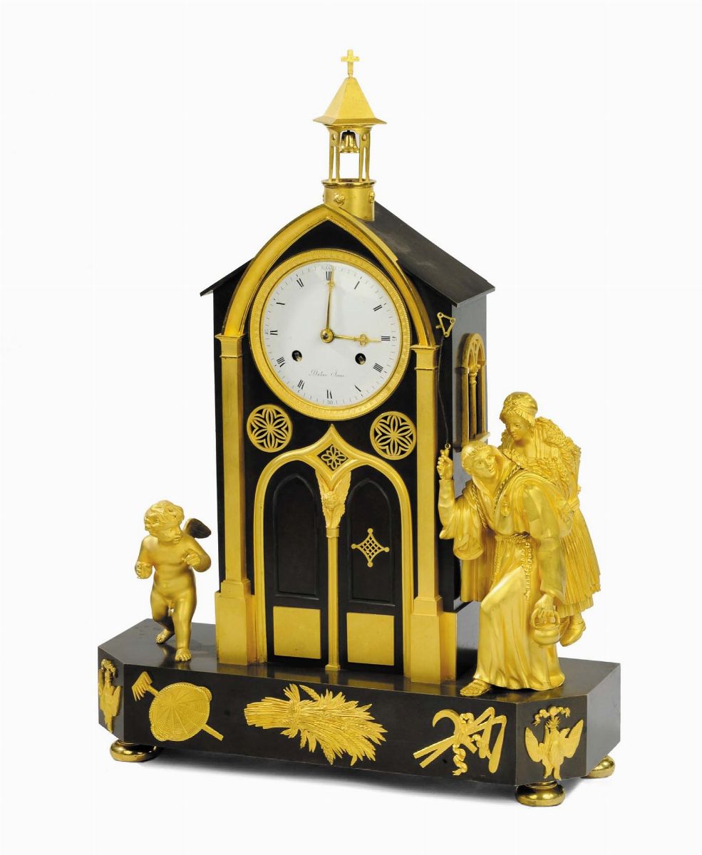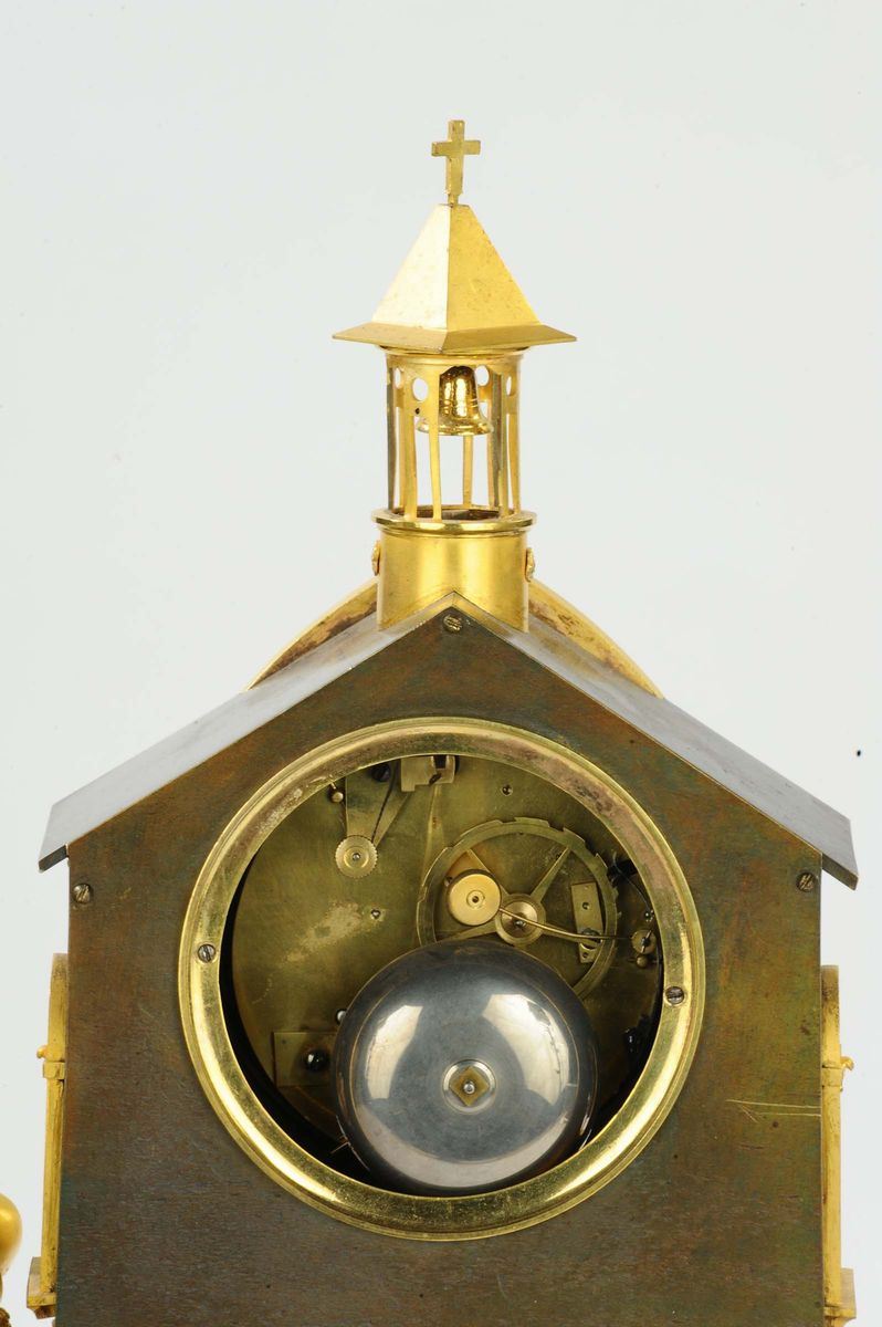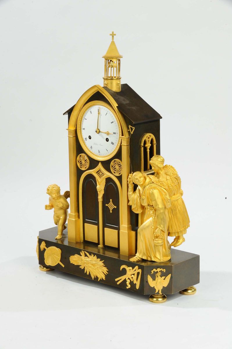 Pendola Impero in bronzo dorato e patinato a forma di chiesa, Francia prima metà del XIX secolo