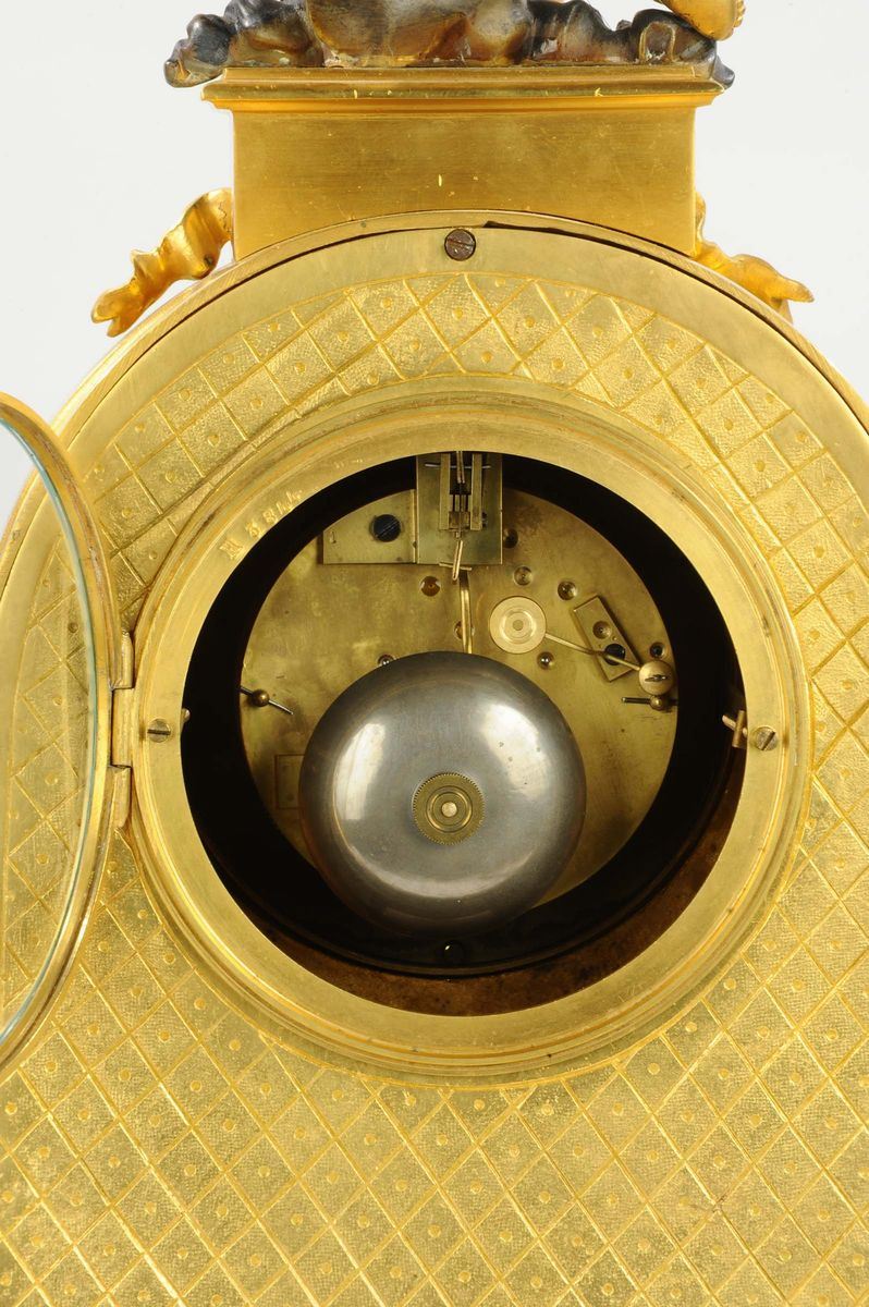 Pendola Napoleone III in bronzo dorato raffigurante le quattro stagioni, Francia XIX secolo