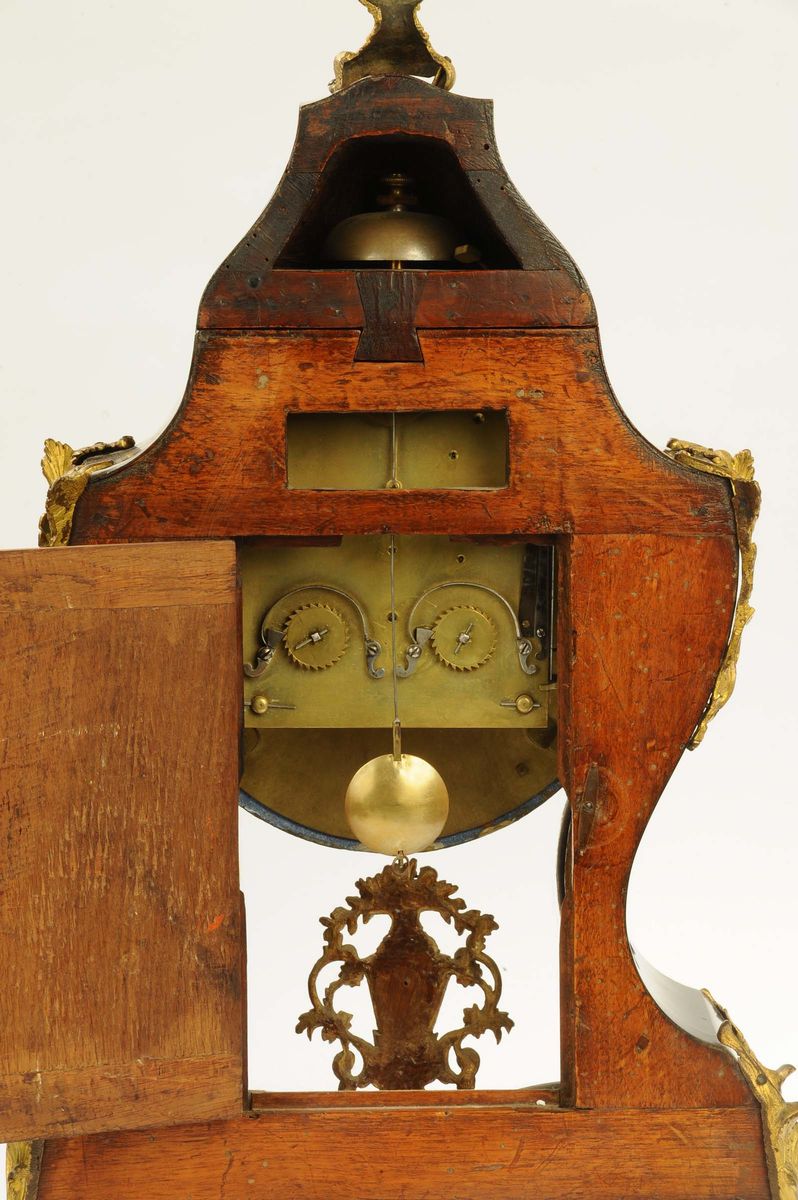 Rara pendola Luigi XV con cassa in legno lastronata in tartaruga e fregi dorati, Palermo seconda metà XVIII secolo