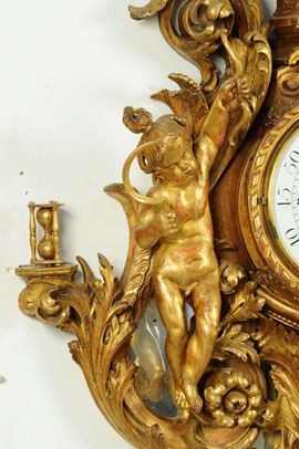 Straordinario orologio Cartel da parete in legno intagliato con putti, Austria 1850 circa
