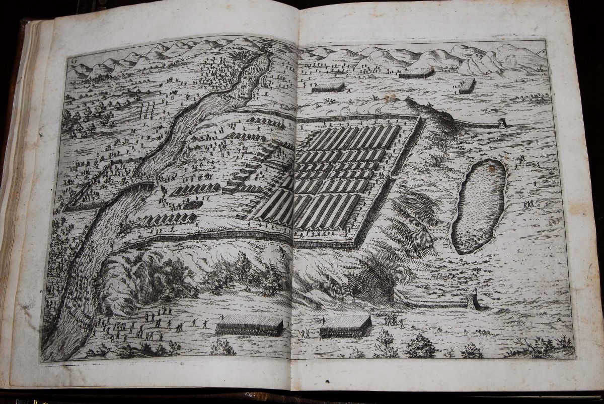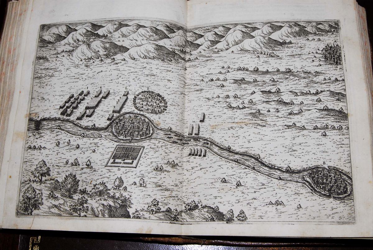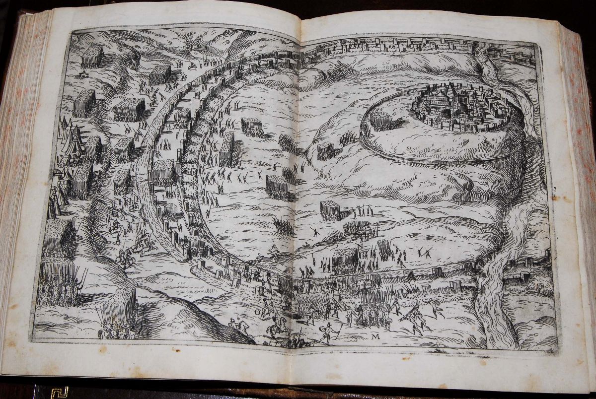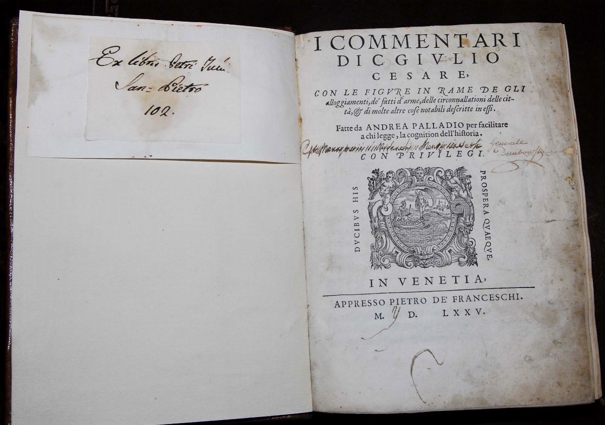 I Commentari di C. Giulio Cesare, con le figure in rame de gli alloggiamenti, de' fatti d'arme, delle circonvallationi delle città, & di molte altre cose notabili descritte in essi. Fatte da Andrea Palladio per facilitare a chi legge, la cognition dell'historia. In Venetia, appresso Pietro de Franceschi, 1575.