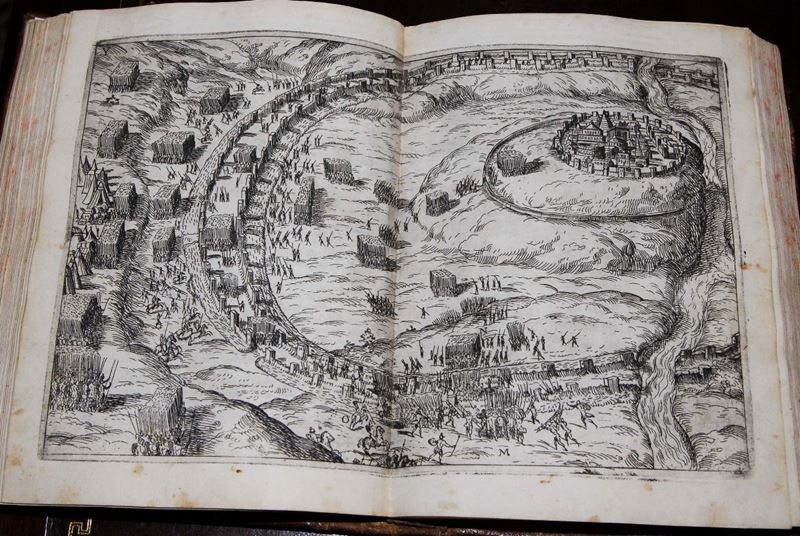 Edizioni del '500 - autori latini CAESAR Gaius Iulius I Commentari di C. Giulio Cesare, con le figure in rame de gli alloggiamenti, [..]
