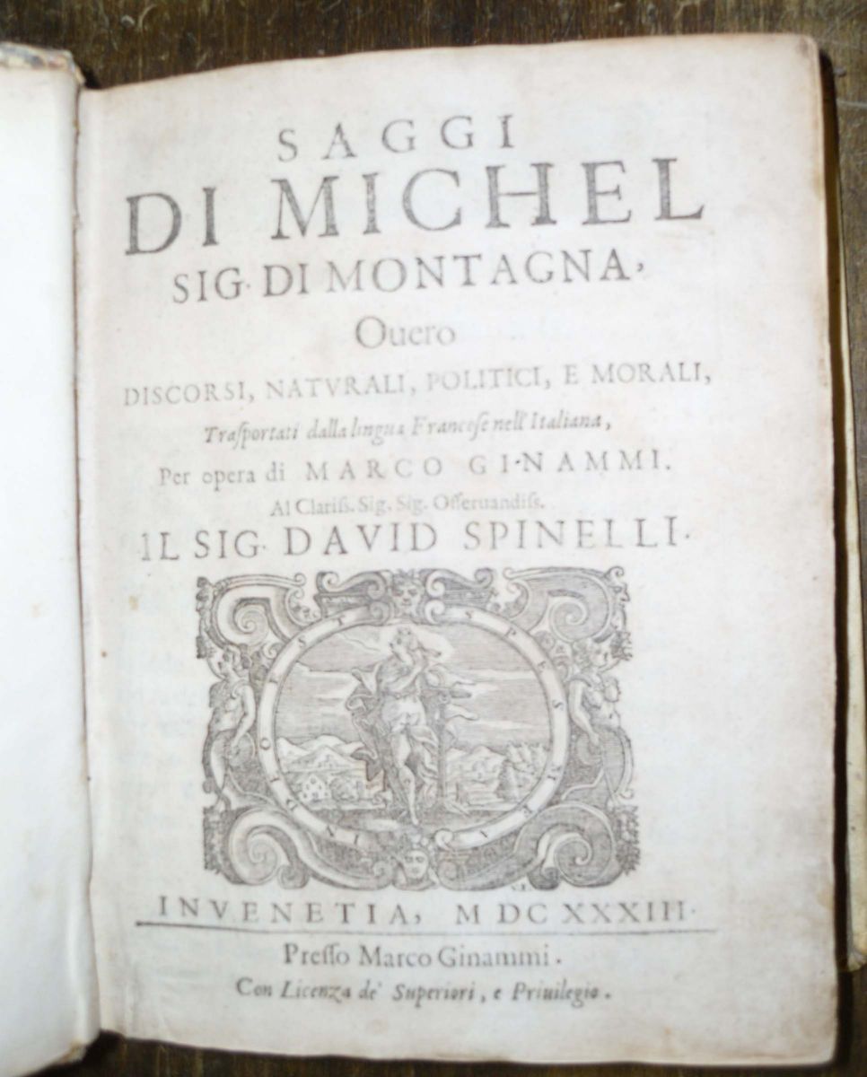 Saggi di Michel sig. di Montagna, overo discorsi naturali, politici e morali, Venezia, presso Marco Ginammi, 1633-1634.