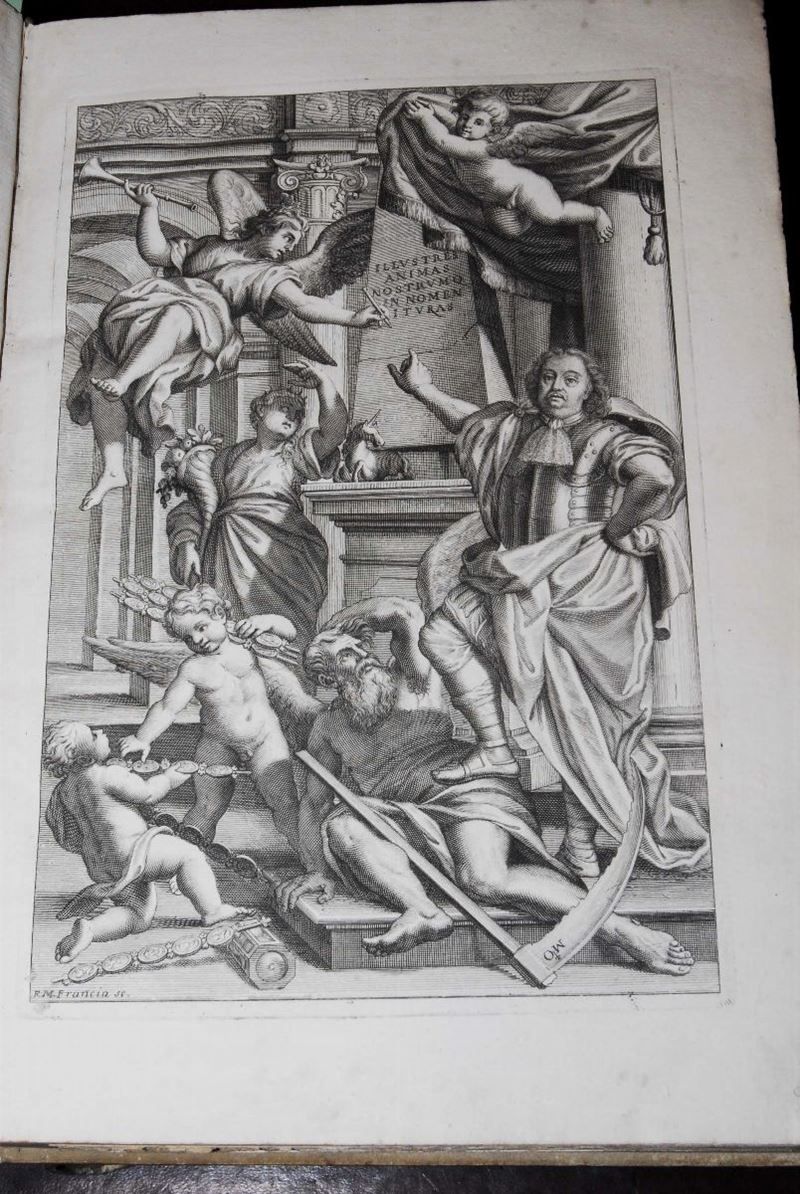 2 tomi in folio, legatura in piena perg. con nervi. Con belle tavole incise fuori testo. Bella copia