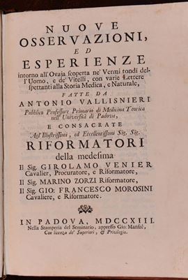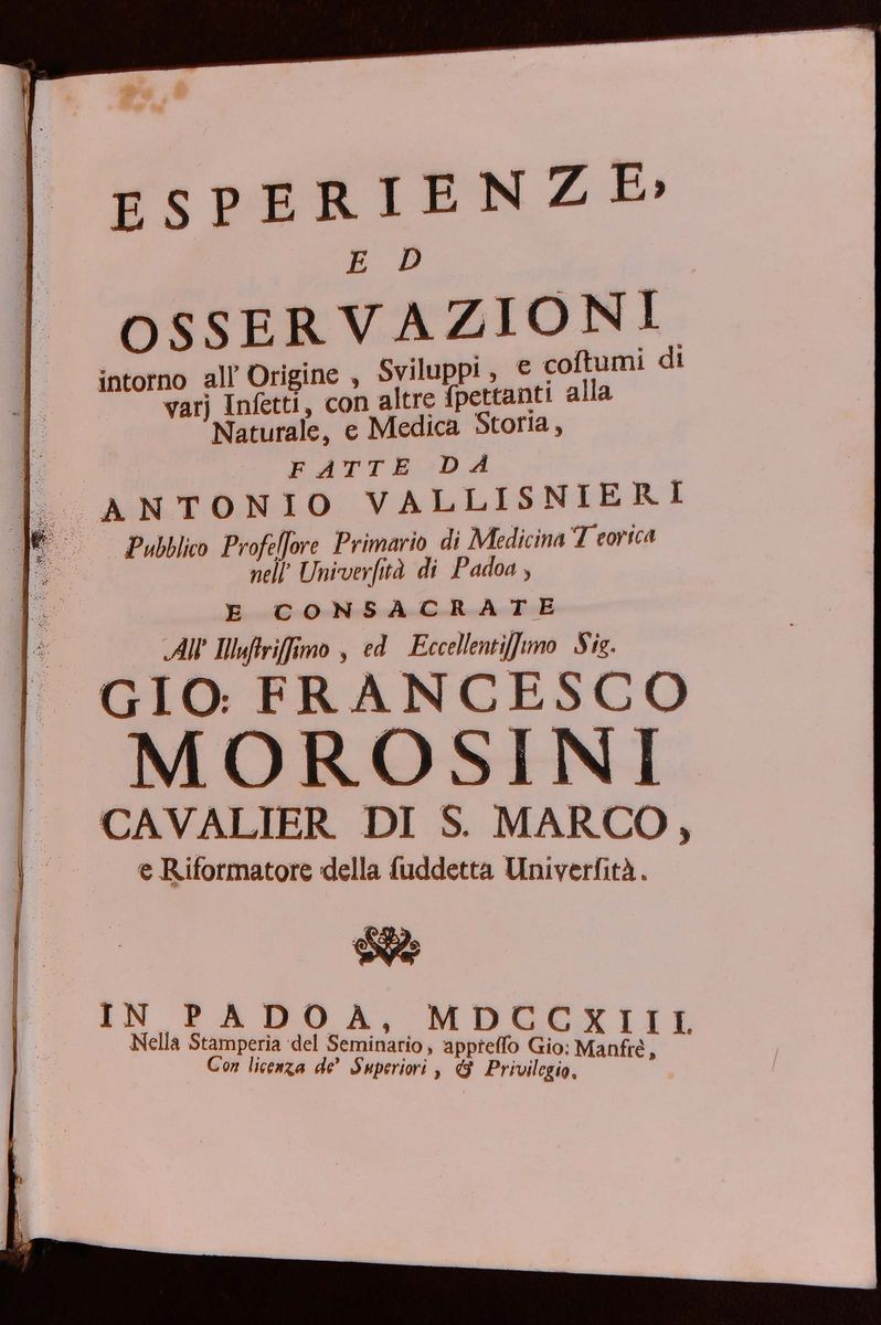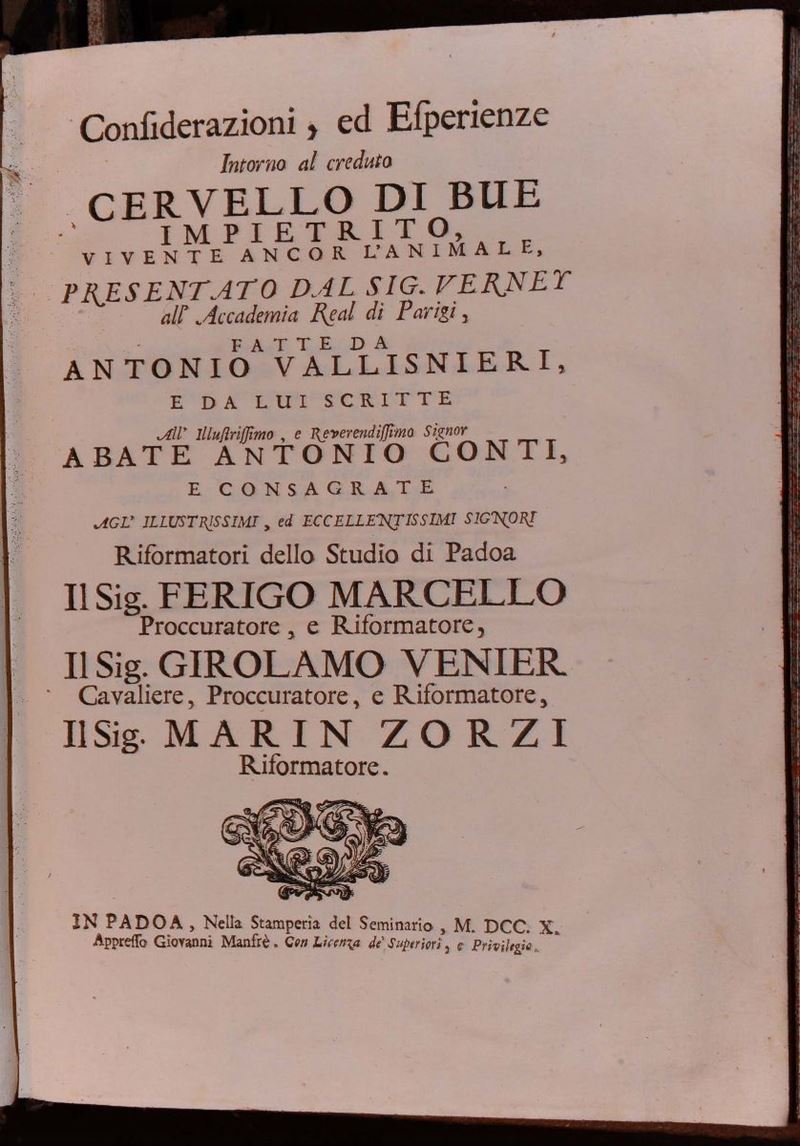 Lotto di 4 opere di argomento scientifico VALLISNERI Antonio