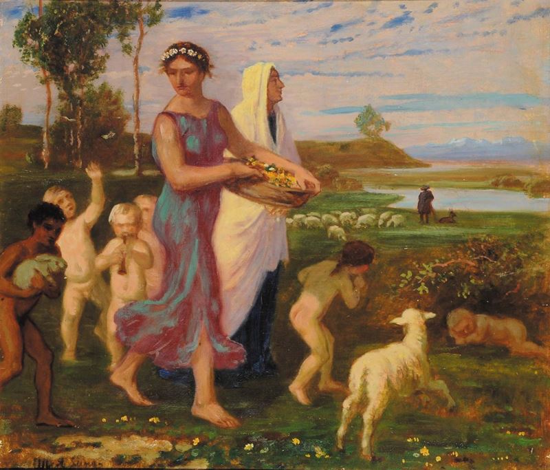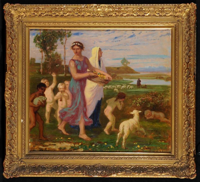 olio su tavola, cm 48x55, firmato in basso a sinistra