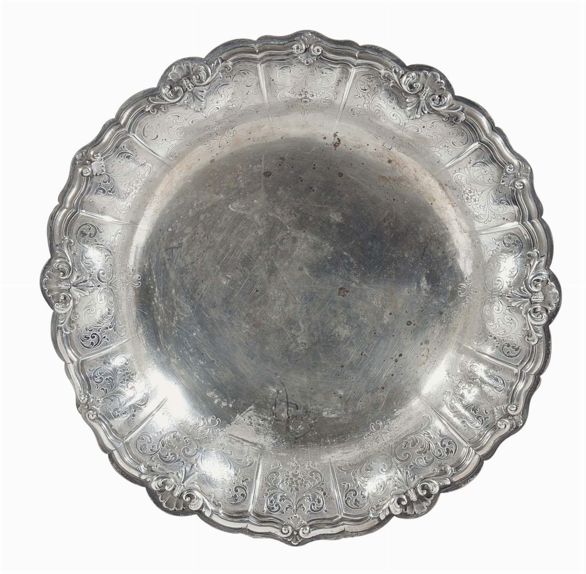 Alzata in argento sbalzato e cesellato, gr. 2000 circa