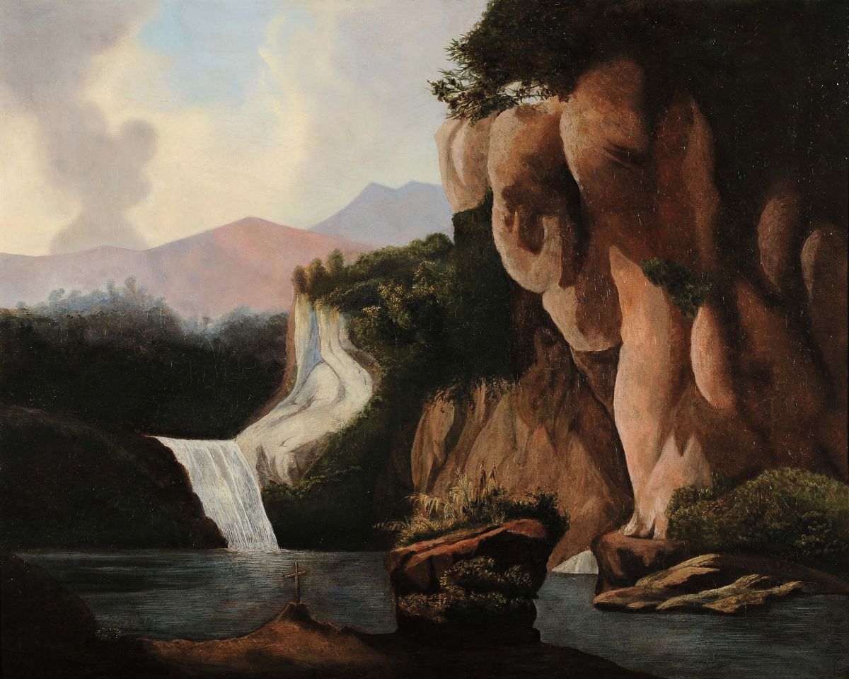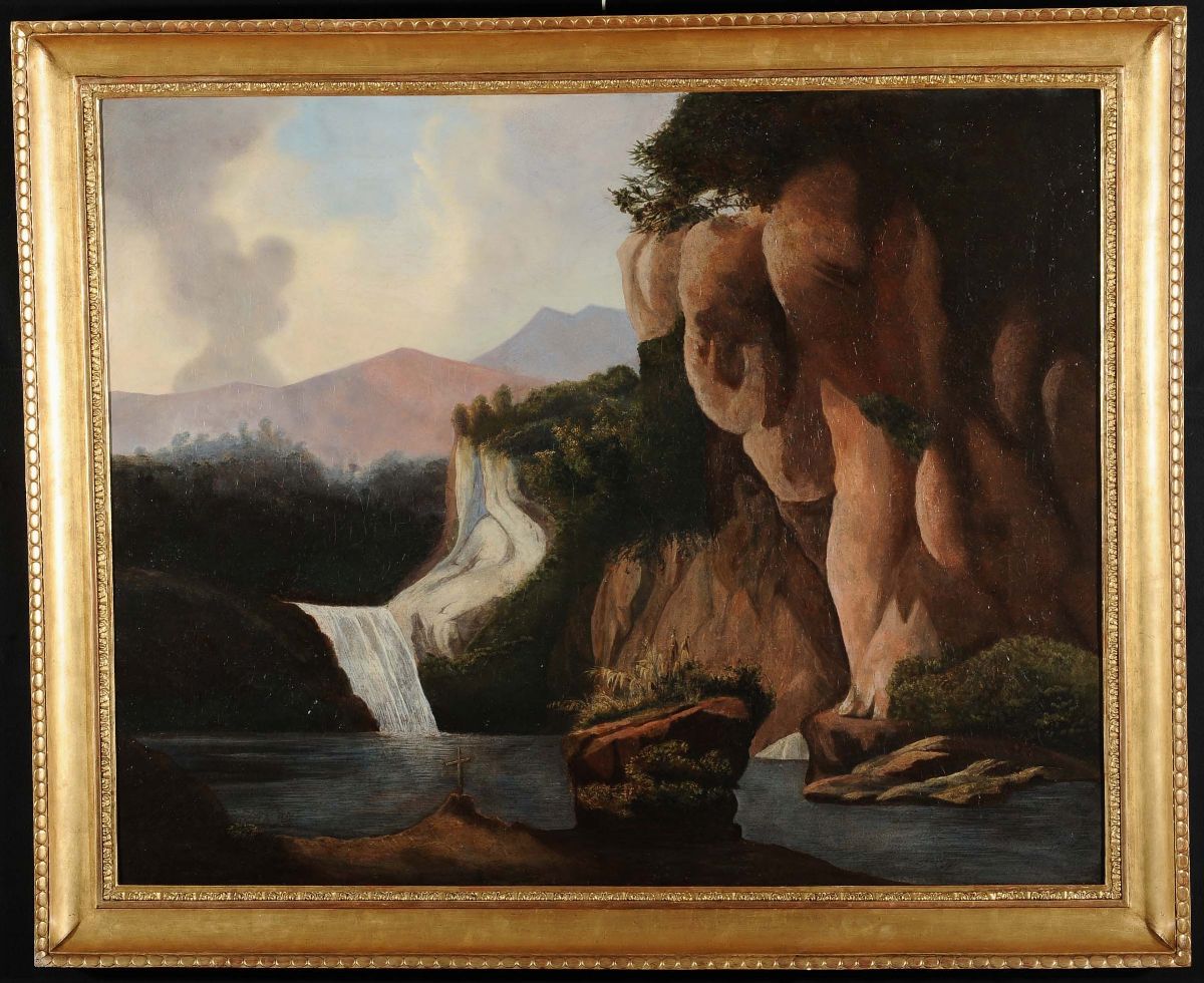 Anonimo del XIX secolo Paesaggio con rocce e cascata