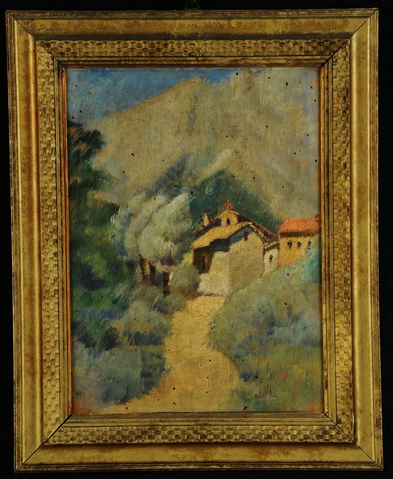 olio su tavola, cm 39x29, firmato in basso a destra. Al verso “Paesaggio”