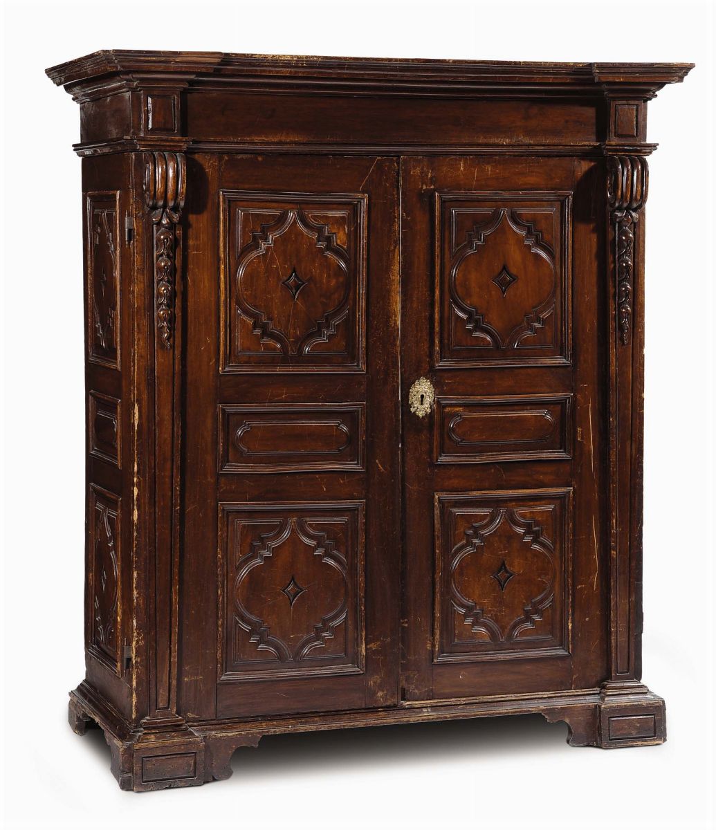 Armadio in noce a due ante pannellate, Genova XVIII secolo