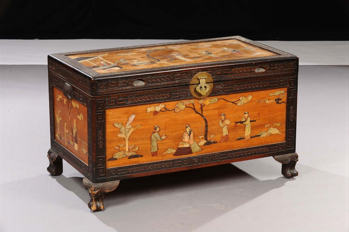 decoro policromo a cineserie in rilievo, cm 105x55x55
