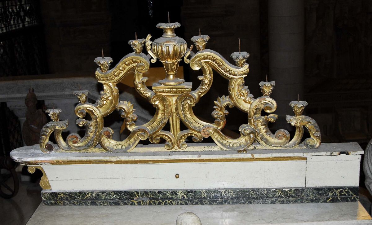 Coppia di candelieri dorati a più luci, inizio XIX secolo