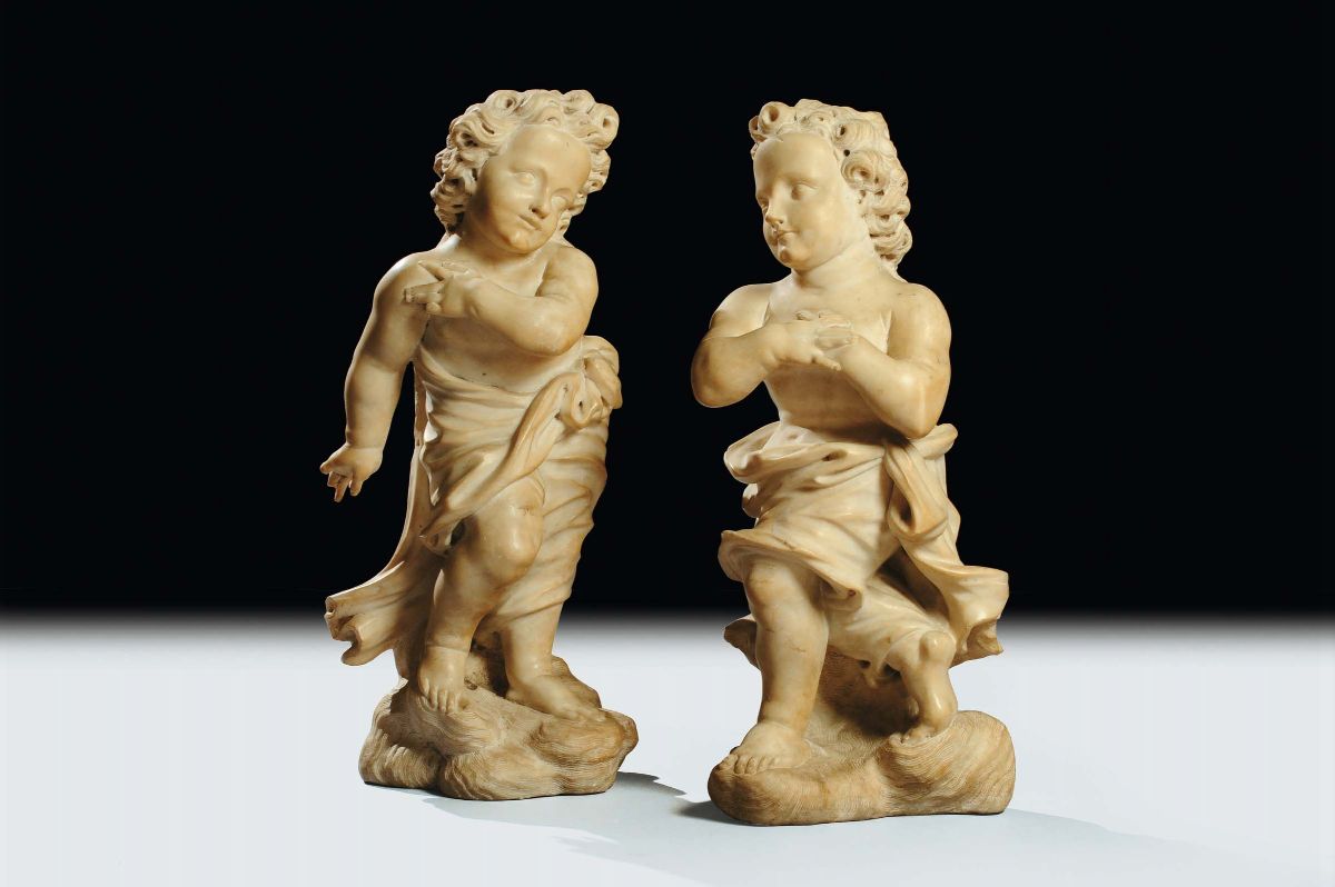 Coppia di putti in marmo bianco, Roma XVII secolo
