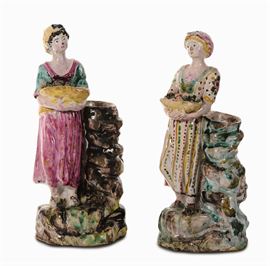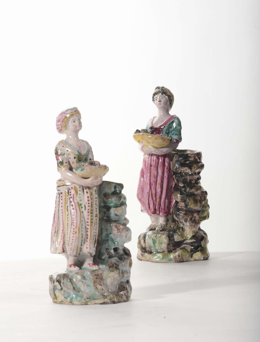 Coppia di statuine in ceramica, firmate Jacques Boselly (1744-1808)