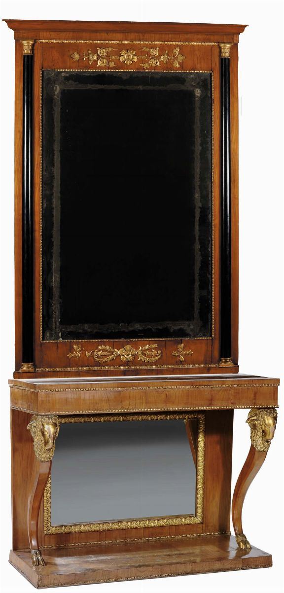 Cosole Carlo X lastronata in ciliegio con specchiera, metà XIX secolo