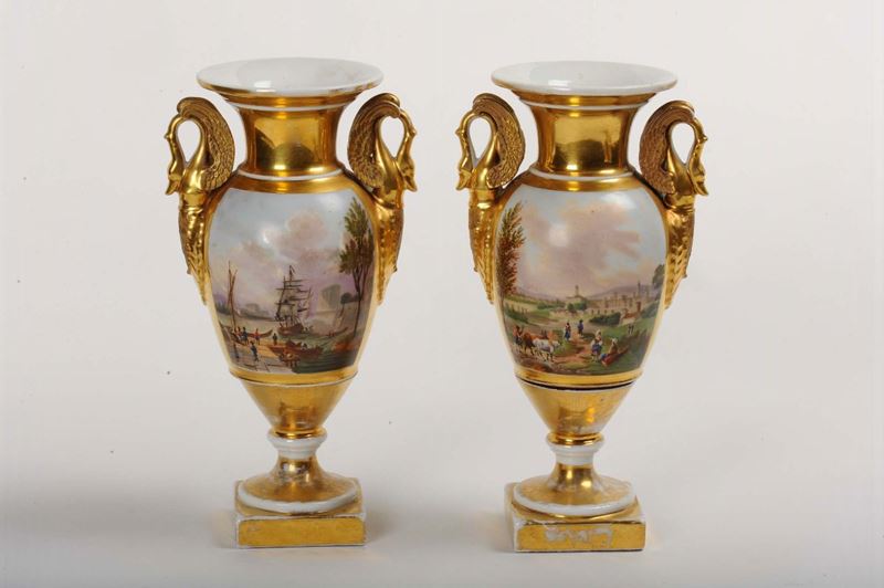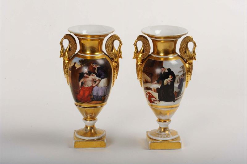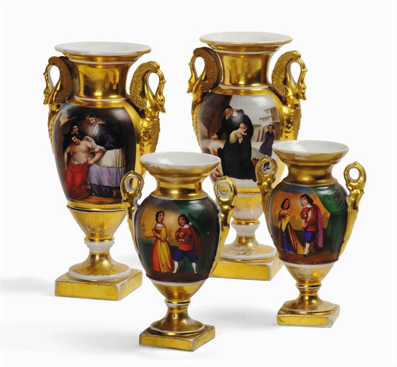 Due coppie di vasi in porcellana dipinta, XIX secolo