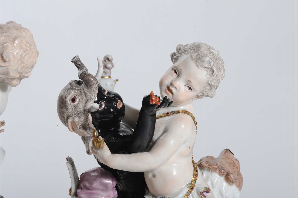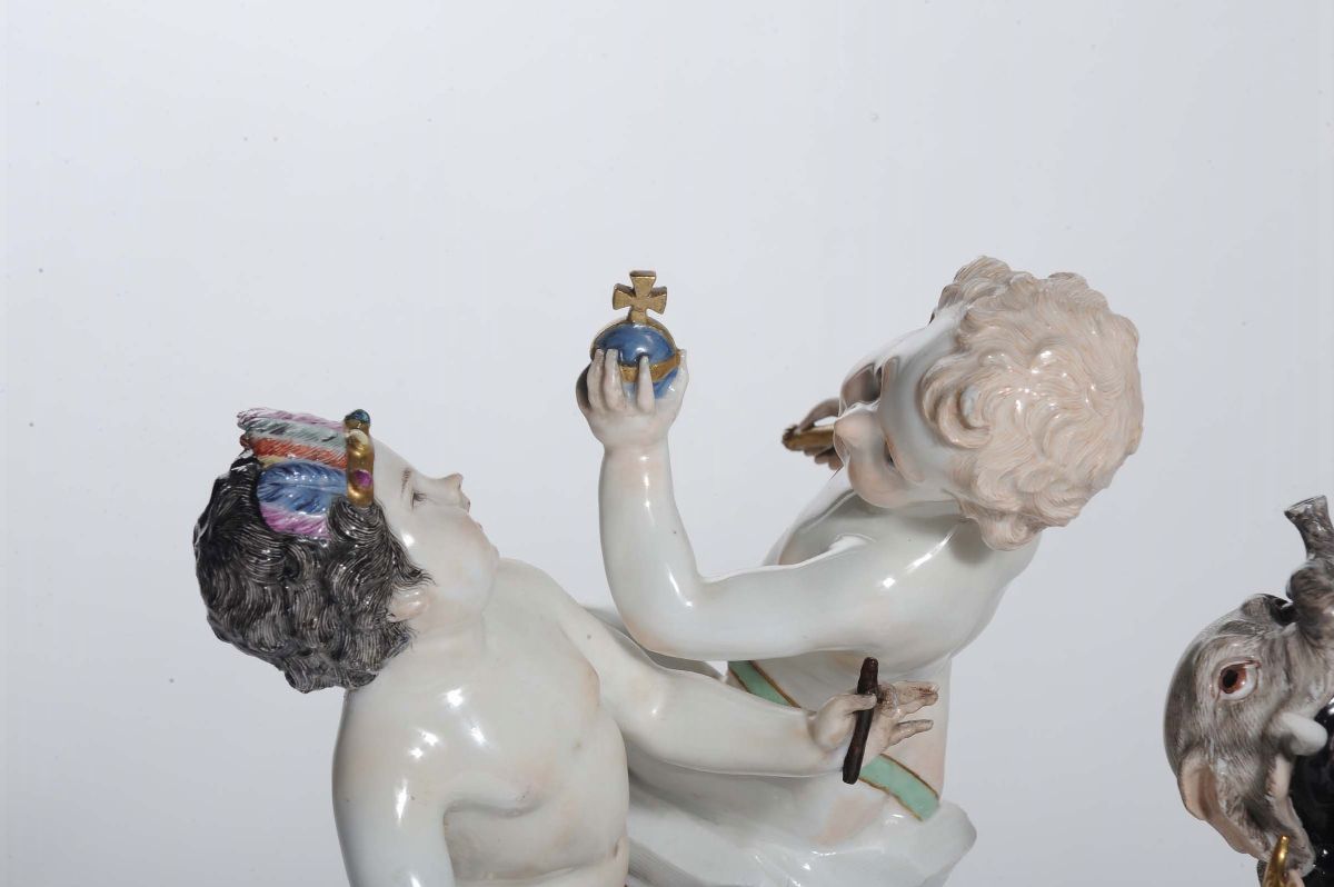 Due gruppi in porcellana policroma raffiguranti i quattro continenti, Meissen XVIII secolo