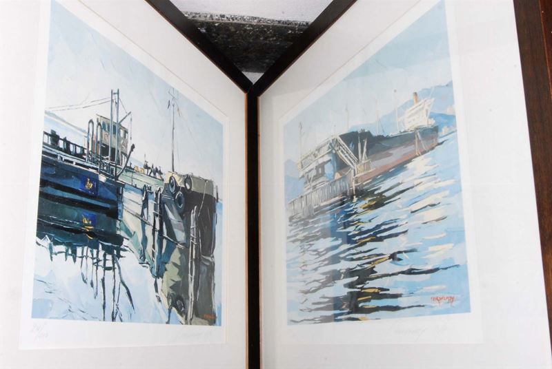 Lotto composto da quattro vedute di porto