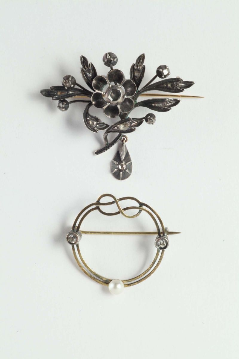 nel lotto anche una perla e spilla in argento a motivo floreale