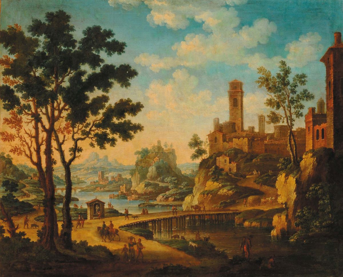 Paesaggio fluviale con ruderi Paesaggio fluviale con ruderi
