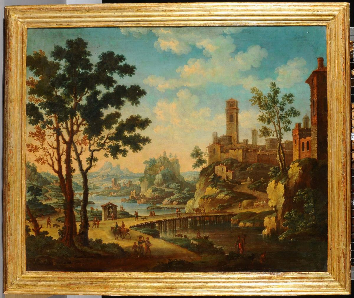 Paul Bril (1554-1626), ambito di Paesaggio fluviale con ruderi Paesaggio fluviale con ruderi