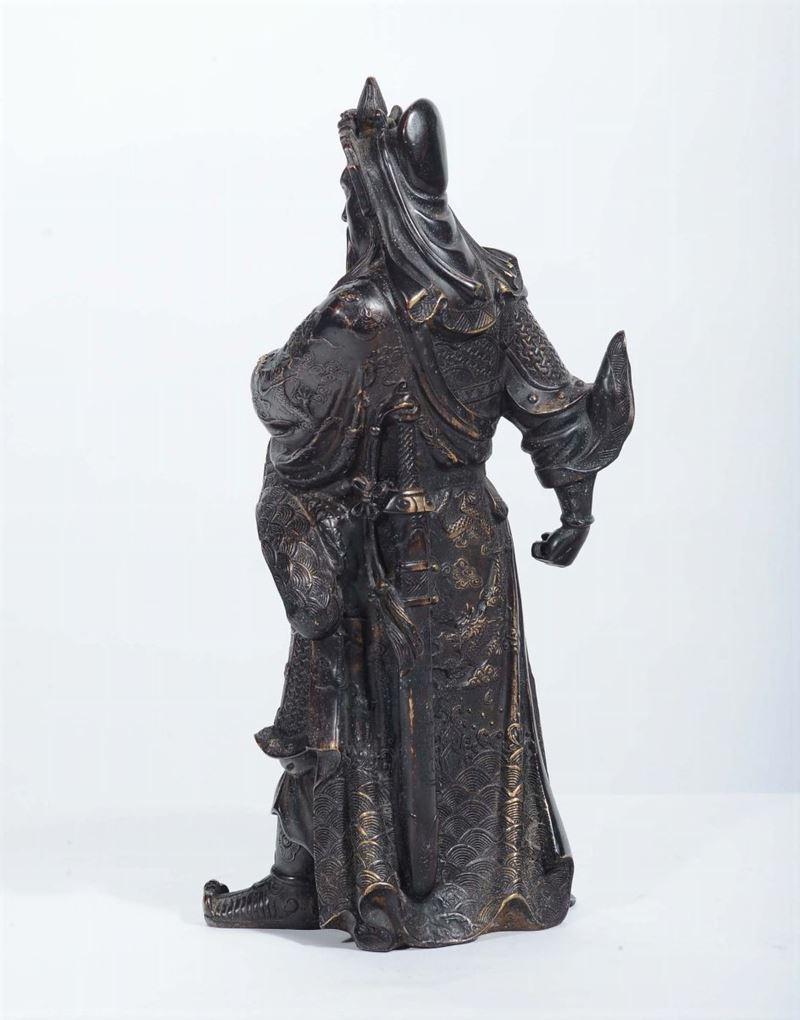 Scultura in bronzo raffigurante guerriero, Cina XIX secolo