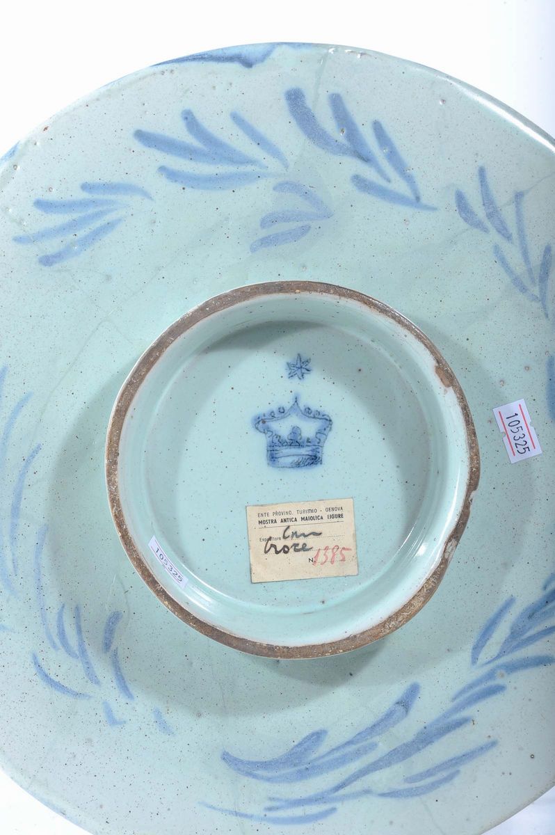decorata in blu cobalto con stemma nobiliare in giallo, Savona, diametro cm 30,5. (restauri)