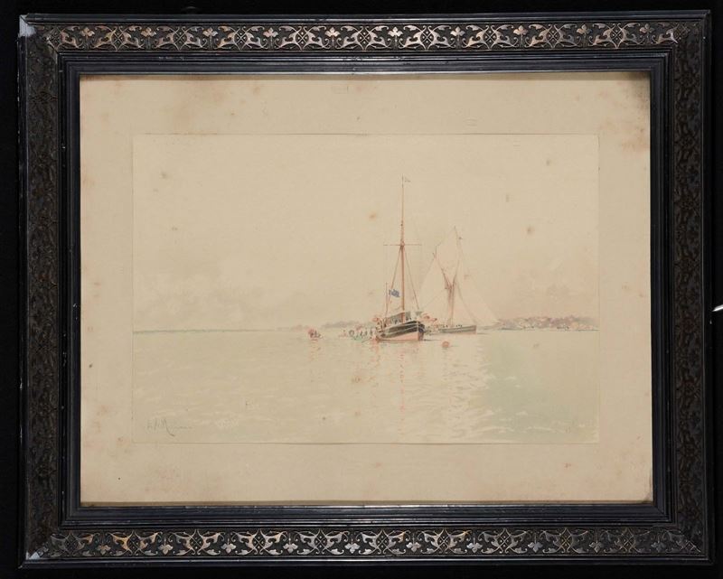 Edoardo Federico De Martino (1838-1912) Marina con imbarcazioni