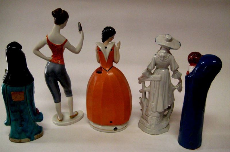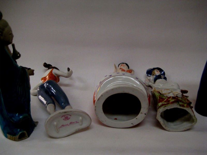 Lotto di cinque statuine in porcellana e ceramica,