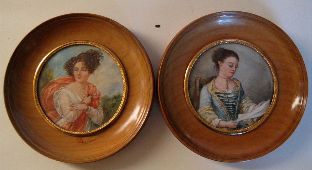 Coppia di miniature su avorio di forma circolare