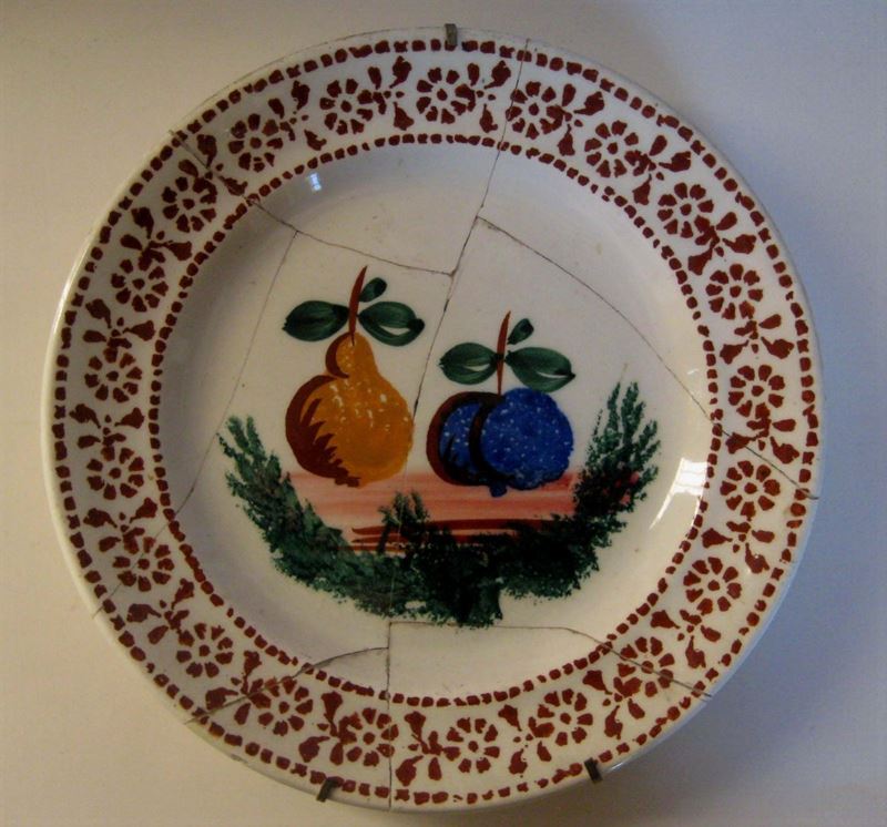 Piatto in porcellana a decoro policromo con frutta, Mondovì