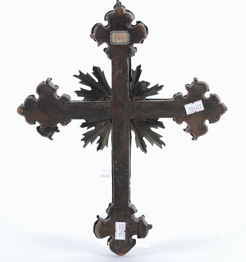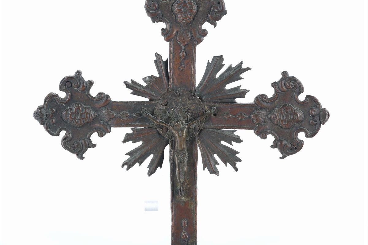 Crocifisso in legno rivestito in rame